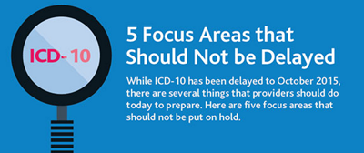 As healthcare organizations around the country struggle with the impacts of the latest ICD-10 delay, many are looking for ways to mitigate the financial and productivity impacts. Healthcare organizations can now take advantage of the additional time and refine their ICD-10 plans in such a way that minimizes impacts on productivity and reimbursements to more fully realize cost and quality improvements. Here are five ICD-10 areas that should not be delayed according to Wolters Kluwer Health: