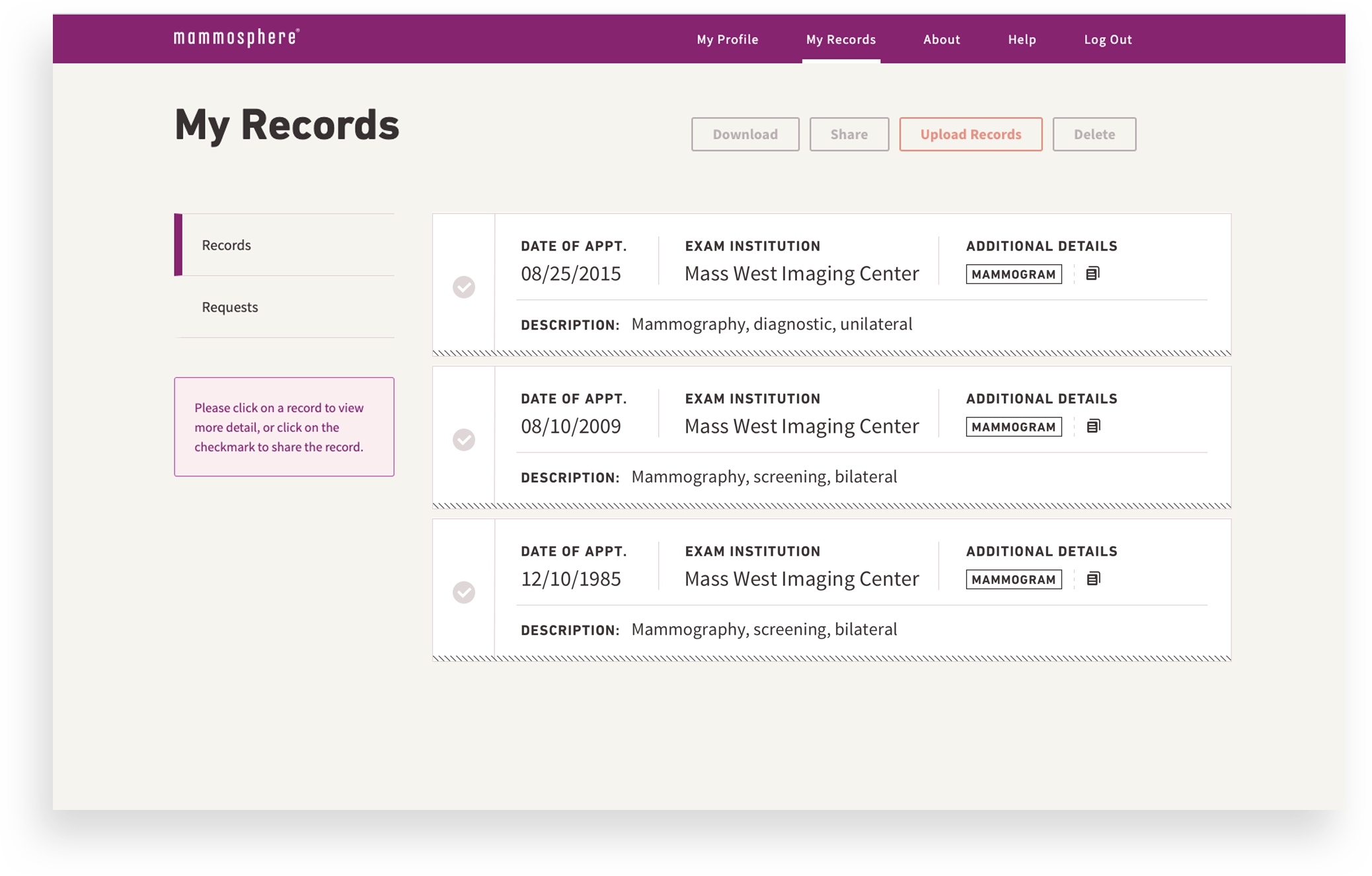 Access to previous mammograms is critical for early detection of breast cancer. Patients without access to previous mammograms are likely to undergo more testing, and cancer detection may be delayed. With access to a patient’s mammogram history their doctor has everything needed to provide a fast, definitive interpretation of the mammogram.