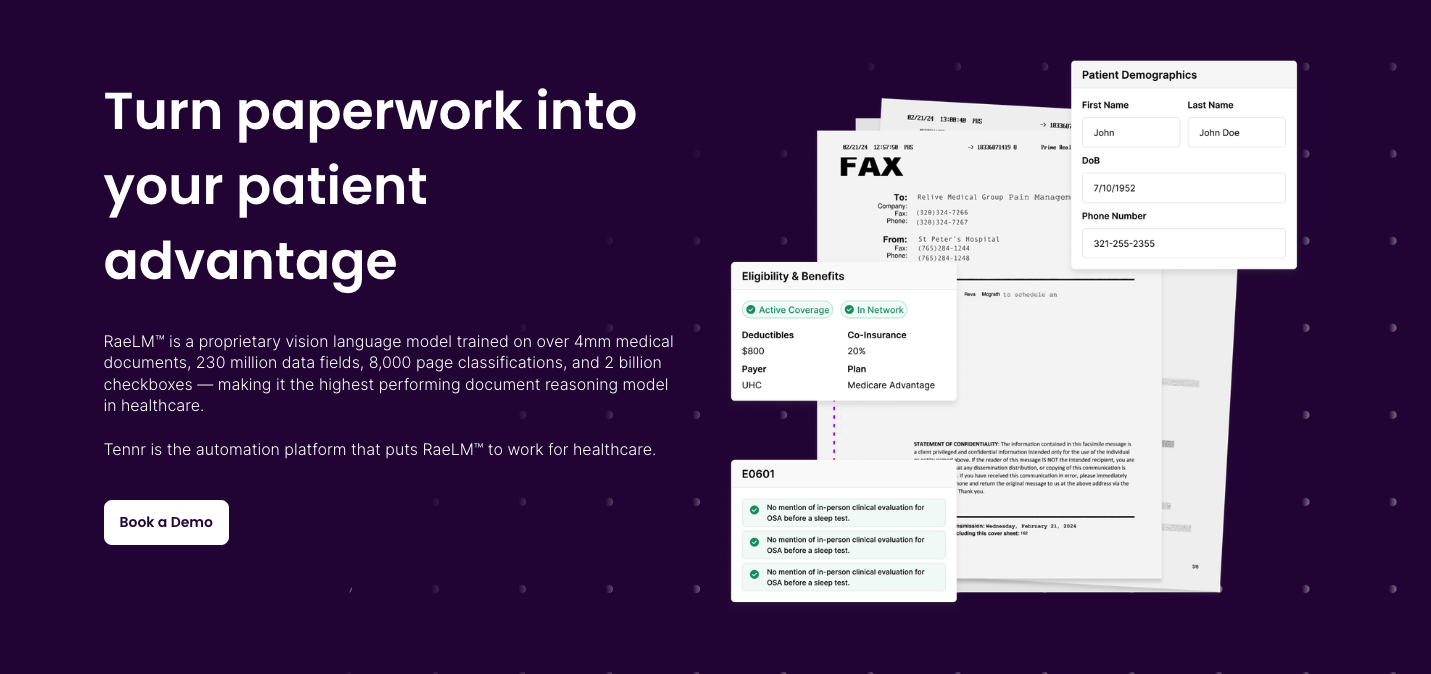 - Tennr has monetized their business through an automation platform that works for everyday healthcare